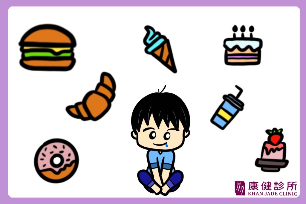 果汁、含糖飲料、各式甜點、含糖早餐麥片、白飯、白麵條等